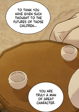 – The chapter 6: Yoon Seungho despises the low noble for not teaching properly to the commoners’ children. During their whole conversation, the master was so sarcastic that he showed how much he disagreed with this mentality.
