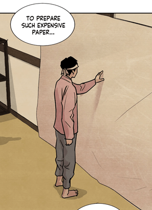 If you compare the paper from the chapter 4, you’ll notice that the paper used by Baek Na-Kyum has a lighter color and is marbled. The beholder can observe some strips on the piece of paper. Yet in the chapter 7, this is what Baek Na-Kyum receives after the arrival of his admired “learned sir”:
