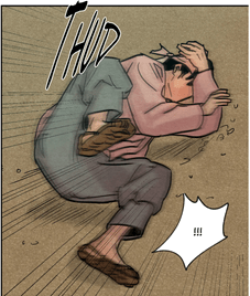 First, his fist is clenched indicating that there is resent, frustration and even hatred. However, his hand and wrist are shaking revealing a certain fear. Seungho doesn’t want anyone to witness his vulnerability and weakness.