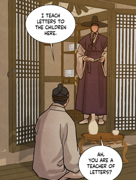 he is mocking the low noble. But the latter is too arrogant to perceive the irony behind this comment. Due to the impressive dark purple color, Jung In-Hun thought, he needed to impress the noble and said things that the protagonist wanted to hear, while in reality it was the opposite. Seungho wanted to reveal the hypocrisy of this man and due to the disguise, he was able to hear what the low noble truly believed. Right from the start, Jung In-Hun was already kissing the man’s ass and the seme was well aware of it. The cloth and the color were used as a subterfuge and Jung In-Hun fell into that trap. While he thought, he was manipulating the powerful master, the opposite happened. The color and the robe left such a deep impact on the poor noble that he was manipulated to unveil his true mentality: arrogance, entitlement and a scheming nature. Due to his appearance, Jung In-Hun imagined that he was standing in front of a typical wealthy noble.