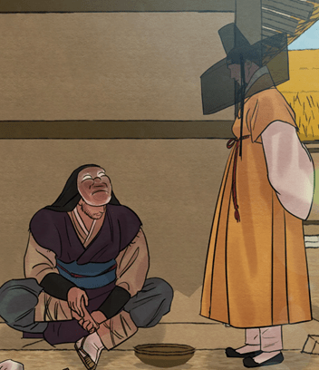 Since he was successful with his trick, he laughs very loudly at the inn. However, the moment the main character decides to cut ties with Jihwa because of his deception, the more depressed he becomes. That’s why he is seen at the same tavern drinking his sorrow. He can’t stop crying. He is also very depressed and pessimist.