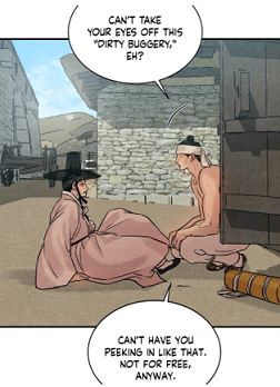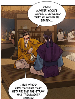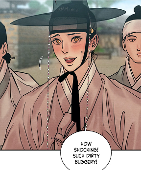 This picture illustrates that he prioritizes pleasure over anything else. I would even add that we have here a rather negative form of carpe diem as he takes pleasure at the detriment of others which is not the case with Baek Na-Kyum. Unlike the commoner, the aristocrat is full of jealousy, greed and envy. That’s why he keeps coping Yoon Seungho: his interests, his clothes and his lifestyle. He stands in opposition to the artist’s modesty and humbleness. If you look again at the image, you’ll note that the laughing aristocrat enjoys smoking opium and doesn’t even hide it. He shows no concern about people’s opinion or moral norms. Furthermore, he doesn’t even care who bought the drug. He takes it as it pleases him. And if the manhwaphiles recall the whole first season, they will remember that pleasure was in the center of lord’s life since his first appearance. He liked the erotic paintings but because he imagined, the author was an old man, he never showed more interest.