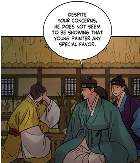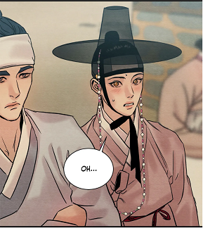 The way he is dressed and acts shows a man behaving like a noble (the hat, the hanbok and the headband), hence the tailor follows his recommendation. For me, the advice from chapter 23 was actually a warning, the painter shouldn’t use the “wedding night” in order to get closer to Yoon Seungho and become powerful. Note that Kim was wondering why the painter was joining them during the hunt.