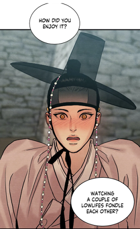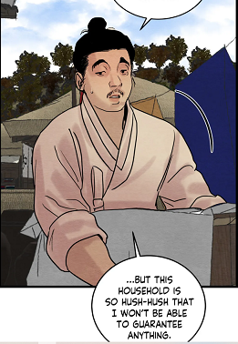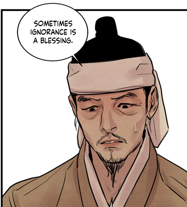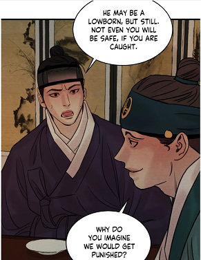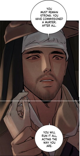 indicating that he wanted to play a prank and mock Jihwa. Notice that even if he incites the red-haired noble to have the painter killed, he never monitors Jihwa’s moves. He never ensures that his acquaintance has indeed hired the killer. He believes that his manipulations will work, underlining that he is not really planning carefully. I would even say that the lord is even overestimating his skills and power. And this becomes even more visible in chapter 52 and 53. First, he is not even capable to hide his involvement in the murder.