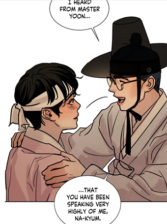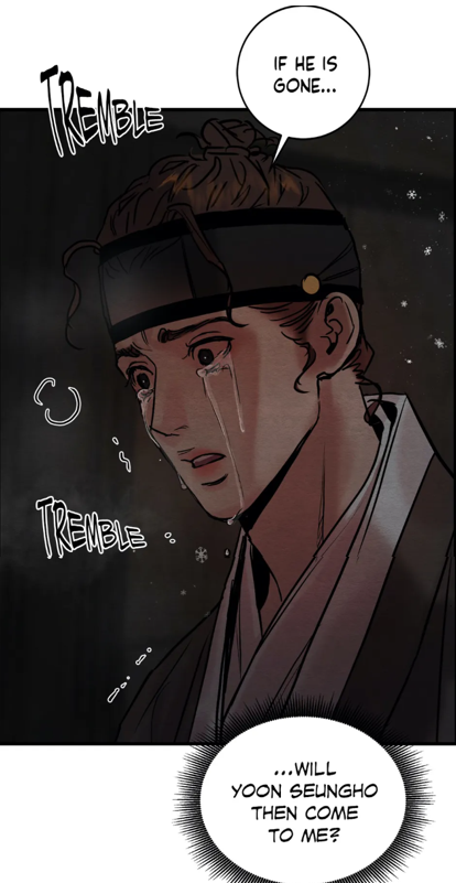 (chapter 11). He will do anything for the noble except painting, and this even after getting slapped and insulted. Kim had observed the rebellious side from the artist. From my perspective, Kim hoped that by saying that the lord had mood swings and Baek Na-Kyum should accept his fate, the latter would make the opposite decision. While the first impression is to think that Kim desires to reconcile Baek Na-Kyum with the lord so that their relationship can improve, the reality is totally different from my perspective. Let’s not forget that Kim is someone from Yoon Seungho’s past, who knows his traumas very well, but doesn’t do anything to change his master. Since the latter is living in the past, Kim has been focused more on the present. Yoon Seungho should never change and behave like a child, so that he needs to relying on his butler, who became his eyes and ears.