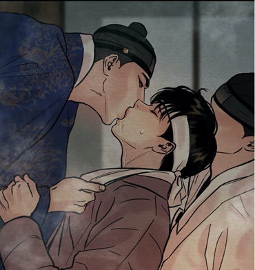 The butler was definitely worried about his own future, the painter could decide that once he had won the lord’s favor and heart that he needed to get rid of his rival: Kim. As you can observe, Kim represents the present, but a different kind: the status quo… the immobility which stands in opposition to Baek Na-Kyum’s present. However, like I have already outlined, Kim’s “present” is in reality the past. Moreover, he has another reason to separate the main leads. If it was known that Yoon Seungho had a relationship with a low-born, this would create a scandal, which the valet abhors. He hates ruckus, because he has no control over this kind of incident. Kim, as a butler, has a legitimation to be close to his master, but for the painter it is different, for their relationship is sexual and affectionate. As the manhwaphiles can sense, Kim’s philosophy and time contrasts so much to Baek Na-Kyum’s, which becomes more obvious during the second season. The moment the main character reflects on himself, he begins to attempt to understand the noble, while Kim doesn’t truly ponder on his own actions. He sways them under the rug, he needs to forget them.