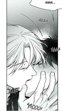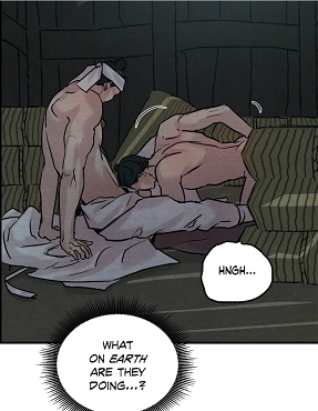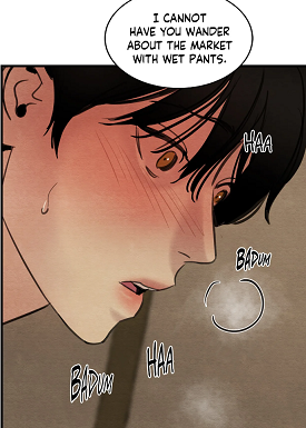The butler is well aware that if his master sees the erection, he will act upon it. Therefore I deduce that in the valet’s mind, Yoon Seungho is indeed a man obsessed with sex, but he will make sure that he remains that way. He has an interest for this situation, the noble doesn’t pay attention to his surroundings and what the staff and Kim are doing behind his back. And this interpretation that Kim is only accepting the painter as a favored servant is confirmed in chapter 52: