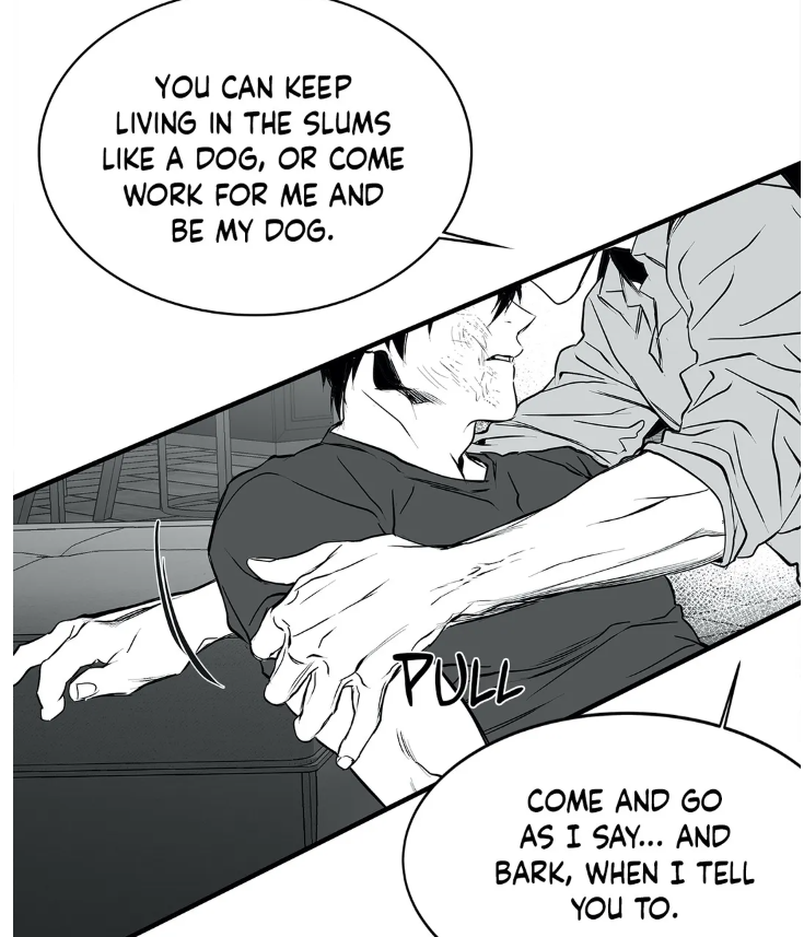 This exposes that he has never tried to discover the real identity of the creator and let his prejudice make the decision. He enjoyed the erotic publications, but that was it. One might say that since Black Heart is determined to overthrow Yoon Seungho and he is very manipulative, he could be perceived as a person focused on the future. However, if you pay attention to his schemes, you’ll recognize that they are never planned in the long run, rather decided in the moment, because he felt like it. It starts with the chapter 33, where he challenges Seungho by asking him to bring the painter to them.
