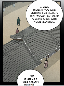 If Jihwa had really investigated, he would have realized that this was no longer true. But Jihwa, really naive, bought his lies and took his words as face-value. This explicates why Min is so amused, when Jihwa appears in tears in chapter 43 at his friend’s pavilion. He had imagined a different reaction,