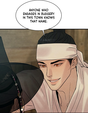 , when they are facing each other while looking at Kim. That’s why the merchant had to call the commoner a servant, he couldn’t call him a painter. Notice that in that scene, the painter never says, he is a painter, although he could have mentioned it. No one is supposed to know the nature of his paintings, so Baek Na-Kyum had no reason to feel embarrassed, unless the merchant knew the content of his pictures and Baek Na-Kyum was well aware of that. And if you pay attention to the exchange between Kim and the merchant, you’ll notice how he tries to catch some info by questioning the true nature of the relationship between Yoon Seungho and Baek Na-Kyum.