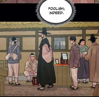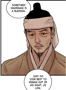 (chapter 23), because he liked keeping people in the dark as well. We had a perfect example with the deal between Jung In-Hun, the painter and the protagonist. First, Yoon Seungho gave the scholar the impression that the former was just an uncultured fool, whereas in truth the low noble was the one deceived, because Yoon Seungho was giving him just an empty promise. At the same time, the rich noble lied to the painter, when he claimed that Jung In-Hun had come to see him.