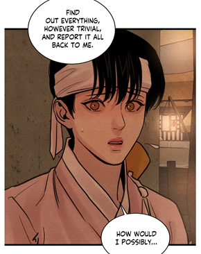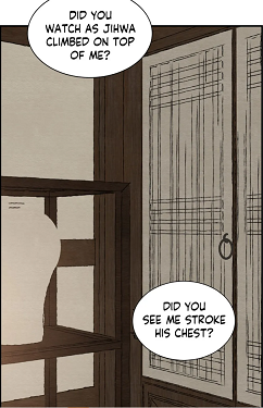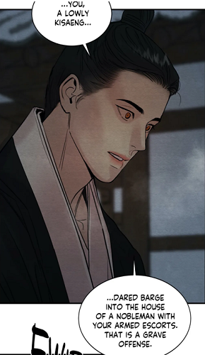 , as he represented the lord. But if there was any trouble, then his master was the one responsible officially. Besides, if Yoon Seungho was changing, the butler would make sure that Jihwa would control his master. As you can see, he never had to assume any responsibility. And this leads me to the following observation, the lord started becoming brave thanks to his affection for the painter much earlier. He truly desired to become responsible for him.
