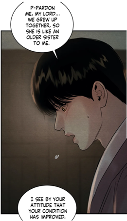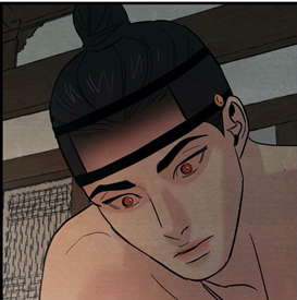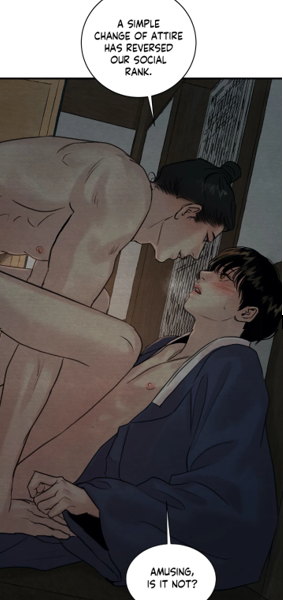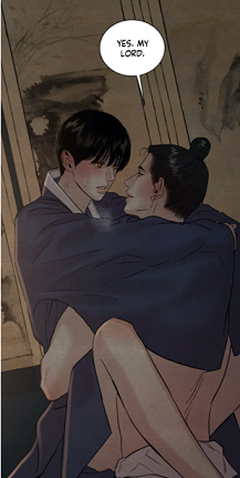 However, with the commoner, Yoon Seungho still remains lying on the bed, he just raises his head in order to look at his lover. This truly exposes that the lord’s discomfort and fear is slowly vanishing.