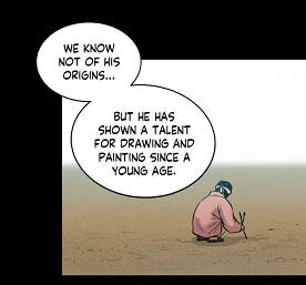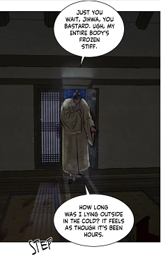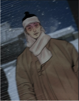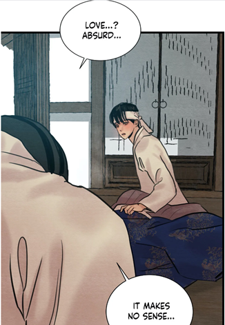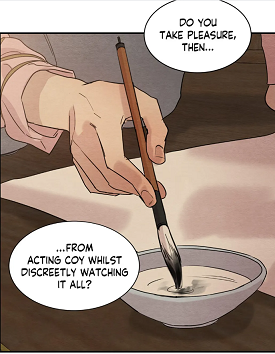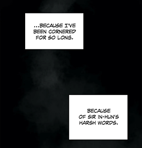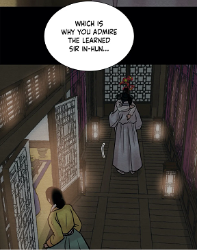 (chapter 24) Note that in many panels, we never see the scholar’s facial expressions, but there is no ambiguity that he could never truly hide his disdain. But the painter was still blinded by his “admiration” for Jung In-Hun. However, after the argument at the library, the painter lost his sight and hearing again. He was too wounded by the final blow.
