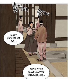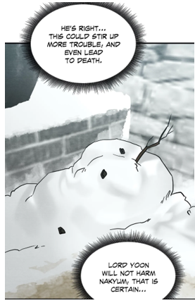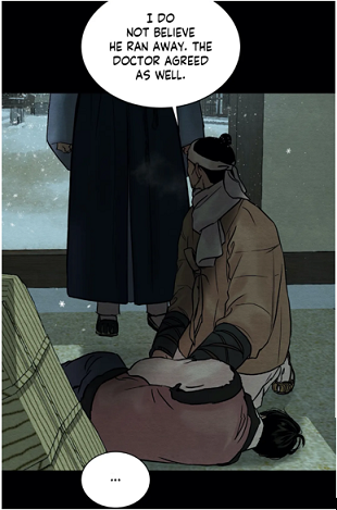 (chapter 61) They were not present, since both protagonists were at the physician’s. From my point of view, Kim must have manipulated the servants… he just needed to imply that Baek Na-Kyum had escaped, while in front of Yoon Seungho, he would say the opposite later due to the commoner’s return: