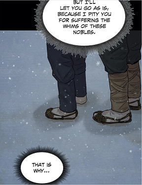 (chapter 8) And observe that the noble was here smiling, he was already imitating the artist. This explicated too why not only his moves in this chapter were contradicting each other, but also Kim was introduced here for the first time. And note that from that moment, the lord never tried to trick the painter afterwards. Like I have already pointed out, the incident at the pavilion was definitely organized by the butler. And with this example, the manhwaphiles can see that the lord was applying the 6th rule as well, but dropped it due to the low-born’s reaction. This is not surprising why this manipulation ended up causing more and more pain. Yoon Seungho had brought him upon himself, revealing how the first doctrine “ignorance is not a blessing“. With this new observation, I perceive the episode 7 as a first major turning point. The lord was dropping the 6th rule (to utilize others in order to achieve his goal). However, this doesn’t mean that he abandoned the first doctrine. Quite the opposite… it took him a long time to realize why he couldn’t achieve his goal. In my opinion, the master started changing in chapter 67. Contrary to chapter 33
