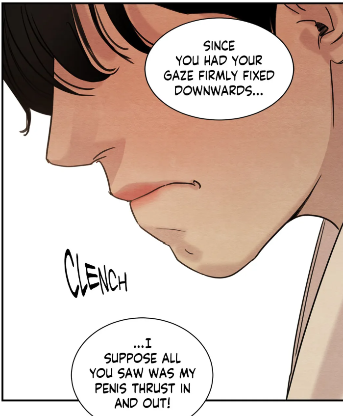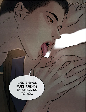 (chapter 38) And the physical interaction reflects the learned sir’s loss of power. Despite his attempts, he was not able to obtain the artist’s submission like in the past. That’s the reason why he could only resent the artist. We have to remember that the low noble really detested this physical intimacy, hence he would tighten his jaw or grind his teeth.