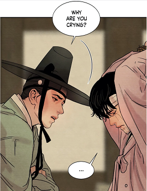 (chapter 70) He has the right to speak, while Heena noona and Jung In-Hun used the embrace and caress as a way to render Baek Na-Kyum mute. And since the affection through physical touch was a way to win the painter’s heart, there is no doubt that Yoon Seungho is on his way to win his heart. Now, the painter is finally looking at him and the scholar’s influence has been finally erased. Baek Na-Kyum is now totally over Jung In-Hun, as he has now only view him as a companion and friend, and nothing more. He is no longer his idol. In other words, the low-born has finally found closure. In episode 70, his heart is free.