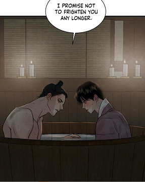 (Chapter 70) In other words, the bathroom is the place where the main leads can be honest to themselves, hence they are genuine to their counterpart. This is no coincidence that the painter was indeed touched, when he reminisced the lord cleaning him.