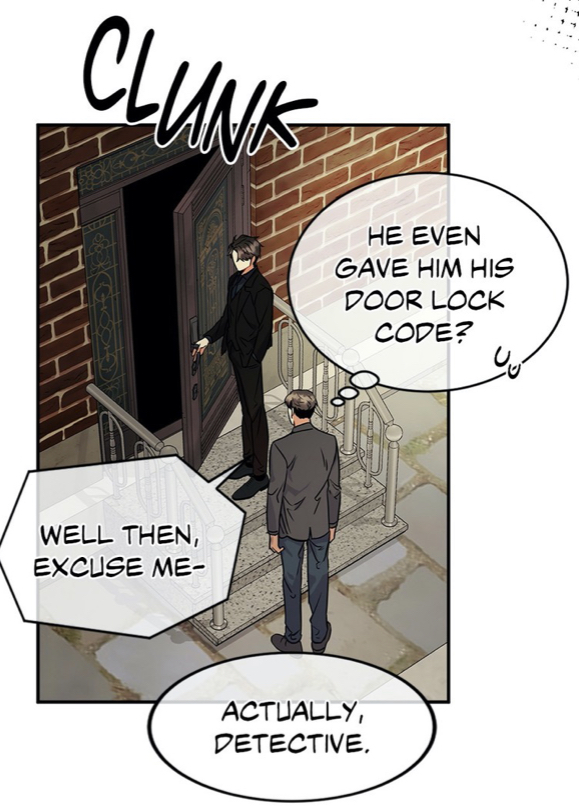 (Chapter 12) I doubt that the main lead gave it to the âsuspectâ, since the latter is under investigation. Secondly, he knows the prosecution officerâs life so well. Observe that he is the one telling the young detective how long Gu Sehuyk will stay at work.