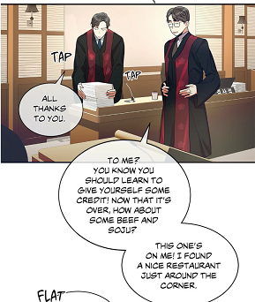 Now, the manhwaphiles are wondering about the origin of this interpretation. What caught my attention is the protagonistâs behavior. First, he lives like a hermit, keeping his distance from his coworkers and totally disinterested in worldly pleasures. This explicates why after his victory at the trial he refuses to celebrate with his colleague.