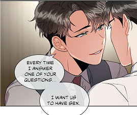 (Chapter 7) After viewing such a panel, the readers can only judge him as weird, but funny. Though the main lead is now a murder suspect, he keeps smiling while making requests, and as you can see, his main condition is sex. Because of such a behavior, he can not look trustworthy in the attorney districtâs eyes, rather obsessed with sex. It was, as if he was amused by this situation. Thatâs even how Gu Sehyuk views him in the beginning of this story. Nonetheless, this is just a deception. The man is actually using the situation for his own benefit. Why? First, his first request is quite serious. He is asking for an investigation.