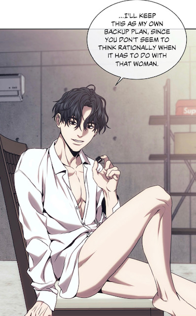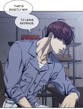 (chapter 13) The femme fatale has power over his life, because she could reveal the truth. That’s her promise, if his situation worsens, she can save him implying that she has an evidence that could prove Do Seong-Rok’s innocence. However, she knew that once her husband dies, she will become a suspect. Thus she needed the main lead to divert the attention from her. Her plan was to redirect the investigation towards the red-haired man.