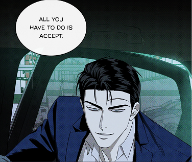 (chapter 5) He swore to be faithful to Shinhae by having the scar on his back for this reason. The pain linked to the tattoo should be a reminder that Shinhae would never be his true family. If you pay attention to his interaction with Cheon Jahwa, you can sense that he has no admiration or deep feelings for her. He serves her, because she is Shinhae’s boss and that’s it. He hopes to inherit the company (chapter 26). Their relationship is based on power, ambition, reliance and Jin’s talent. For him, Shinhae is only a family in name. In fact, it is just a company. Since his minions are still following him and even show no anger after the beating, we can clearly sense that the director has always been a loyal and dedicated person. As you can see, I perceive that black embodies Jin. This is his color, therefore he is wearing a dark suit. His regret, guilt and disappointment led him to live a colorless life. This is not surprising that this panel represents Jin’s perception.