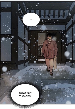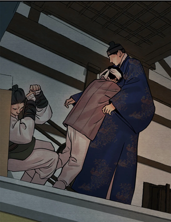 (chapter 55) He had done something wrong from a moral point of view, but he had not violated social norms. Besides, the painter had not seen his violent outburst as a huge abnormality, he had protected him from Deok-Jae. Then he had defended his honor, when Min had insulted him. As a conclusion, the lord found his true heart during that night, and learned that life was precious. But Yoon Seungho’s lessons were not over. He needs to learn that even a bullying domestic didn’t deserve to die. Notice that he showed no concern for the deceased person.