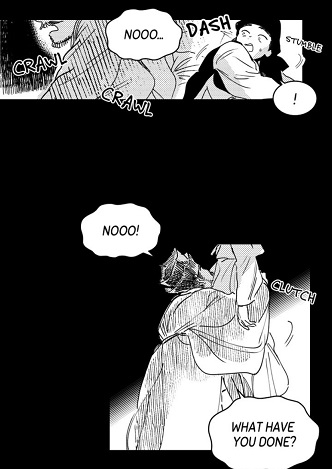 (chapter 33) He has always been taught that there exists a difference between low-born and noble, therefore he came to view commoners’ life as less precious. He never saw them as humans. They were first commoners. Their life is not fragile either, for there are much more commoners than nobles. Yes, I have the impression that Black Heart is receiving his lesson. Commoners are humans too, and not just playthings. What if Baek Na-Kyum dies? He will never be able to taste him.