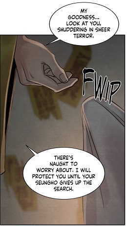 (chapter 52) Even if he takes his body, he will never get his heart or soul. In this scene, Pilgyeon realized that if he kept in that direction, he would push Soongap to have suicidal thoughts again. This shows that wealth and power are ineffective, they can never stop someone from becoming suicidal. These values are nothing in front of death.