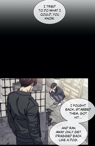 One might wonder why Do Seong-Rok didn’t explicate his situation before, why he didn’t ask the main lead for help. He had two reasons for this: (chapter 33) In his eyes, the protagonist wouldn’t be able to keep his promises. All these words were empty. How could he take Lee Je-Oh seriously, when the young man had been living in a cage for so long? He had no idea that Jeon Hee-Seong had played a huge role in the man’s misery. (chapter 26) Through this wrong choice, Lee Je-Oh discovered the treacherous side of this woman. Because of her, he suffered a lot. He was trapped in hell for 3 years. (chapter 26) She had deceived him with a fake dream, as if he could liberate himself by stabbing the pimp. So since the prostitute was strongly connected to Ma Jong-Seok, Do Seong-Rok could witness how miserable Lee Je-Oh’s life was. (chapter 7) Though the character claimed to have fought back, he never viewed it. Thus in his mind, the prostitute was powerless. That’s the reason why he didn’t trust the man’s statement: (chapter 32)