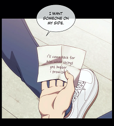 And now, the manhwaphiles are probably wondering why the father left such a note in the first place. Why did he give hope to his son, when he never had the intention to return? In my eyes, the father did it to lessen his remorse. That way, he would create a fake image about himself. He was not a bad person, he had never meant to hurt or abandon his son. Consequently, he had made sure that his son would live in comfort. However, the result was that the man ruined Do Seong-Rok’s life, for the message created the illusion that he had indeed a family waiting for him. This explicates why the protagonist said this: (chapter 27) He was still hoping, but his despair was always present. Since water is a synonym for life, this means that as an orphan he could live in comfort (exoneration), but he was still missing warmth and affection. There’s no ambiguity that he must have kept thinking about them the whole time. Therefore it is not surprising that for his birthday, he wished a family (chapter 27) and not a console or video game. Furthermore, for the son, it meant that he would never be adopted! How could Do Seong-Rok get adopted, if he had been left with such a note? To conclude, the promise in the note was in reality fake. It stood for empty words. Simultaneously, it ruined the main lead’s life, for it pushed him to question his own existence. Why was he born in the first place, if he was not loved or needed? The son got traumatized, when his relative turned his back on him after begging him to vanish from his life. It was, as if he had been abandoned a second time. Do Seong-Rok felt lost, his existence had no meaning at all. Hence it is not surprising that he chose to destroy the letter. (chapter 27) It was, as if he was cutting ties with his biological father. In addition, since Do Seong-Rok associated the paper to a promise, this means that he came to the idea that a promise should be expressed in words and not written. At the same time, he learned a terrible lesson: (chapter 38) He would never make an empty promise. If he can’t keep a promise, then it was better to never promise, for it would create an illusion and disappoint the person who was clinching onto the promise.
