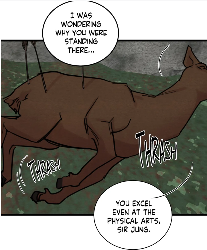 (chapter 101) As a punishment, he was given to lord Jang and his friend. Since Min had captured the artist, he viewed himself as his owner who would give order to his pet. Yet, a deer is a shy, but wild animal, difficult to control making it difficult to be tamed.