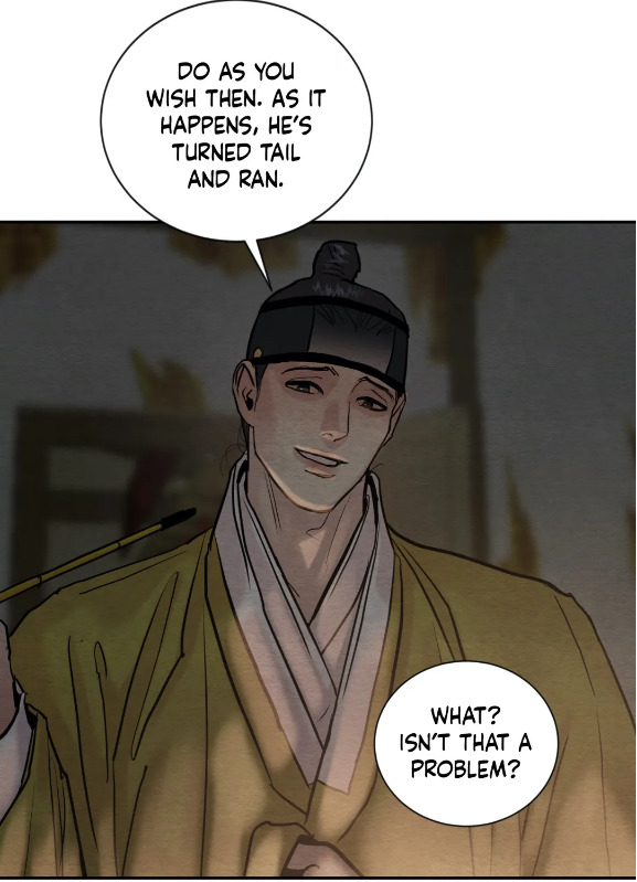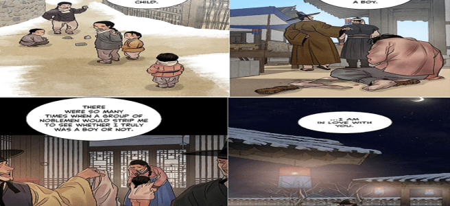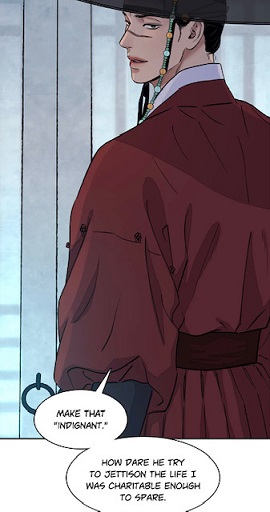 (chapter 4) and once he hears how headman Choi got evicted from the court because of Yeonjo, the aristocrat will definitely blame the domestic for his “misery”. The aristocrat with the green hanbok envisioned that he had discovered the governor’s secret and as such vulnerability. But the official has never hidden his sexual orientation. One might accuse the governor of treason, because he has a relationship with the son of a traitor, yet this relationship could be judged differently. Lee Yeonjo could be judged as ruthless and immoral, he is sleeping with the murderer of his own family. Besides, this could be seen as a humiliation… the son has to serve the governor as his night servant. That’s the reason why Kwon Hee-Ryang said this to his assistant. It was not kindly… but indignant.