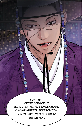 (chapter 22) In verity, the main lead uses the statements from the innocent slave to his own advantage. If he was coerced and raped by Chang Moowon, then Kwon Hee-Ryang will treat him differently. The governor takes each confession from Lee Yeonjo at his words. The result is that the young slave is put in a position where he can choose. He has to prove the veracity of his words and as such his willingness that he selected the main lead in order to improve his living conditions. He has no other choice than to act on his own free will. Thus Kwon Hee-Ryang said this: