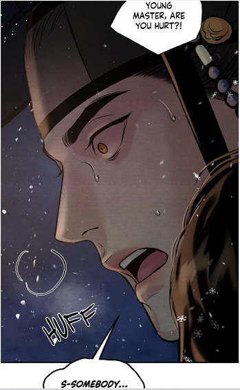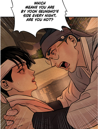 (chapter 103) Here, the man with the purple hanbok was utilizing the painter’s illness to hide his own crime. Under the pretense to help « Yoon Seungho » to become a man, the man abused him not only physically, but also sexually. There is no doubt that this reconversion was fake!