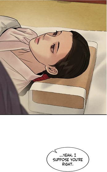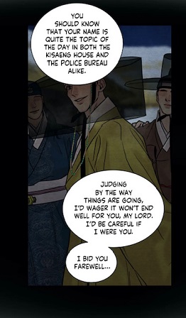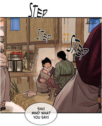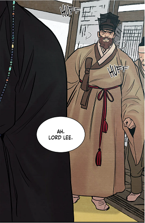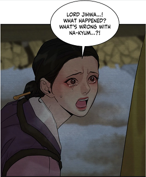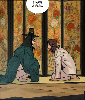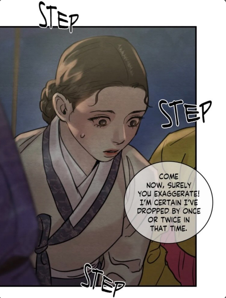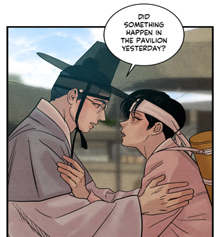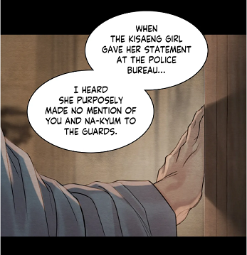 (chapter 107) Hence I doubt that the noona would feel so close to such a man and address him with his “first name”. On the other hand, the kisaeng has a drop of sweat on her face, which is a sign for a lie and deception.
