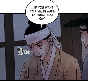 (chapter 107) Striking is that the man implied that Yoon Seungho would blackmail the father and lord Song because of a document. But this statement is wrong! The main lead never threatened his own father… First, he only reminded him of the past and the accusation for “treason”.