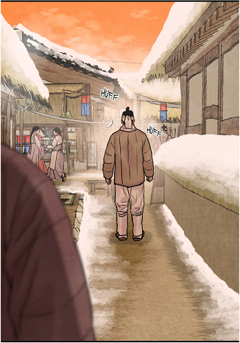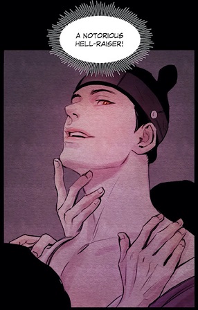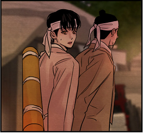 (chapter 107) In other words, in episode 107, the manhwalovers are witnessing a fight between 2 men wearing a purple hanbok!! In this story, purple is the symbol for violence and peril. This explicates why Byeonduck employed this color, when Yoon Seungho was portrayed as a ruthless lord:
