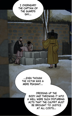 (chapter 103) This signifies that Yoon Chang-Hyeon is innocent! He never murdered Lord Shin in the woods, for he relied on the assistance of the helping hands. He never visited himself the scene of the crime.