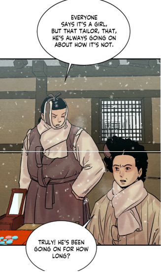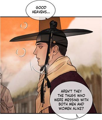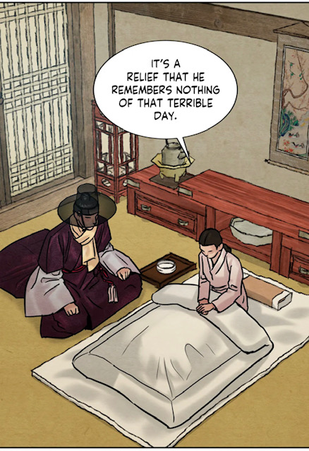 (chapter 82) So how can he be wearing a purple hanbok, if he lost his position and home? This color is reserved for important people. In addition, when he entered the kisaeng house, the artist’s noona called him differently: