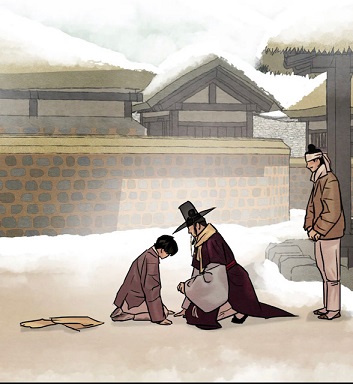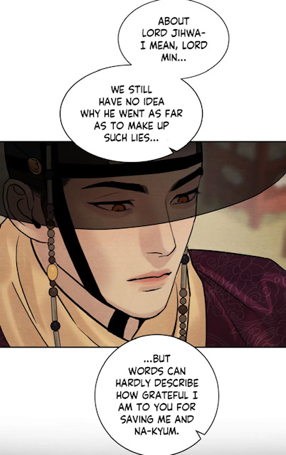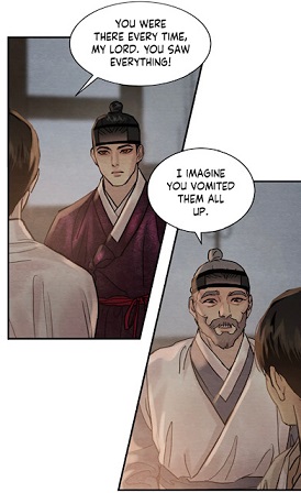 (chapter 88) During that night, he discovered warmth, loyalty and tenderness! In the darkness, the lord could detect the presence of the light: the painter! During that night, they vowed fidelity to each other. And in the garden next to the shrine, Yoon Seungho made the opposite experience: it was dawning on him that people from his own family, Kim and Yoon Chang-Hyeon,