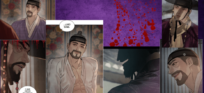 As you have already noticed, I am writing less about Painter Of The Night, though this manhwa remains my favorite story. The problem is that more and more people are moving away from the Korean webtoon for different reasons, like the absence of eroticism, or Lee Jihwa and No-Name are no longer included in the story. Another reason is that the author is focusing more and more on the mystery and as such on the lord’s past. This means that right now, the manhwaphiles are asked to read the manhwa like detectives looking for evidences and traces. Finally, I believe that the biggest reason for the loss of interest is that the manhwalovers hoped to witness more romance, yet Baek Na-Kyum keeps suffering and this partially because of Yoon Seungho’s “bad decisions”. Some readers couldn’t understand why Yoon Seungho would run after the man in the purple hanbok.