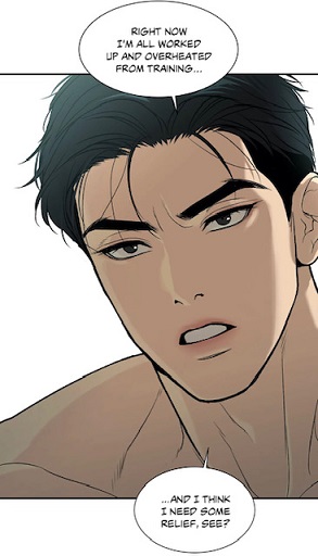 Besides, don’t forget that the champion had lied to his hyung before, so the hyung could do the same. Or he thought that Kim Dan would be happy, if his partner returned much earlier home…To conclude, this idea got reinforced. Moreover, keep in mind how the champion had reacted, when he thought, he had been blocked. He ruined a sandbag! (chapter 5) So seeing Joo Jaekyung totally obsessed with training, the manager could have thought this either: (chapter 7) He was overheated from training, he needed some relief. 😂