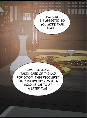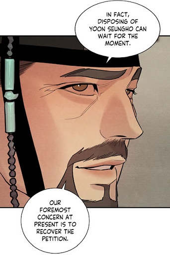 (Chapter 116) The elder master would no longer seek the truth, similar to the kidnapping in season 2 which was turned into a desertion and later Lee Jihwa’s abduction occulting the instigator and the helping hands. Simultaneously, Yoon Seungwon needs his brother as scapegoat, because the pressure coming from the patriarch and lord Song must have definitely increased.