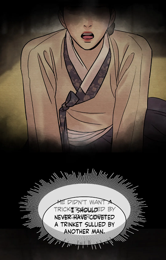(Chapter 55) People had played with his hopes and longing for acceptance and recognition. Interesting is that offerings is a synonym for atonement and sacrifice. But why is Yoon Seungwon so sure that he can repeat the same action from the past? It is because Kim and Yoon Seungwon have known for a long time that Yoon Seungho was longing for acceptance and love from his family, just like the scholar knew about the painter’s love for him.