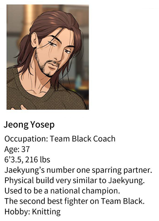 (chapter 11), because he considered them as superior and colleagues. In other words, the fighters will share their pain with doc Dan helping him to overcome the loss. But this change can only happen, when the owner of Team Black has a change of heart himself as well. Remember how he pushed Oh Daehung and the other members away.