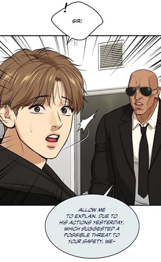 FBI agents typically wear professional attire that allows them to blend into various environments while maintaining a polished and authoritative appearance. The standard FBI attire includes dark-colored suits (navy, black or charcoal gray), dress shirts, conservative ties, and dress shoes, when it comes to special events like court appearances or important meetings. However, despite their appearances, the MFC security agents exposed their true nature. They are fake.😮 (chapter 40) How so? They are not wearing any badge and credentials!! 😉 Compare it to these scenes: (chapter 15) (chapter 40) This means what they did was illegal. Moreover, these guys are working for MFC which is a private organization. These agents are not working for the government or for the department of justice. They have no “legal authority” in the end. This explicates why they didn’t provide any translator to the physical therapist (chapter 40), why they pressured Kim Dan to confess a crime. (chapter 40) They acted like cops and judges which they are not. Since this image (chapter 40) resembles a lot to the one from the hospital, (chapter 5) I couldn’t help myself thinking of a death sentence. (chapter 40) However, contrary to the hospital, the doctor was not abandoned. His lover came to his rescue chasing away the darkness from the “spider”, the MFC security agents.