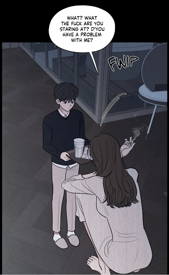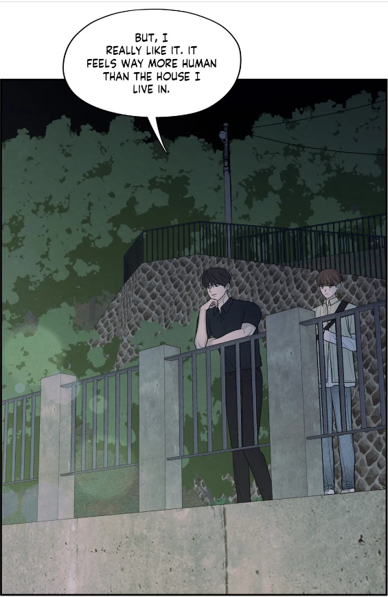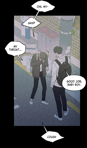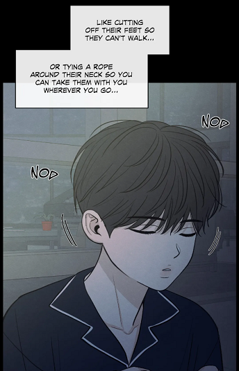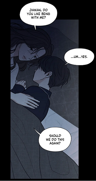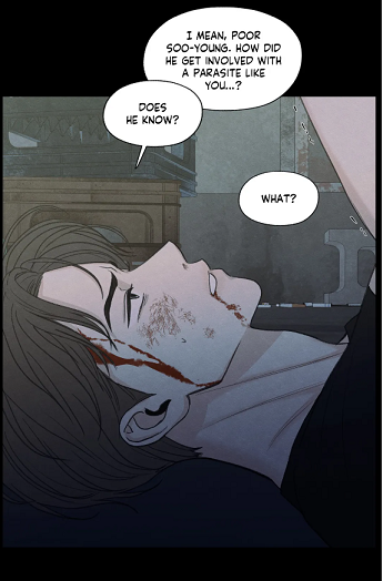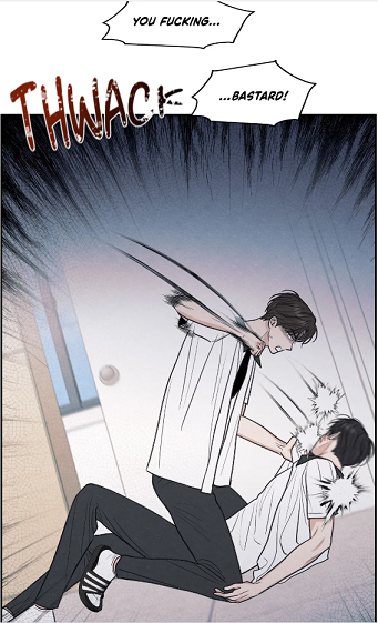 It is because Tae Seong-Jun had acted exactly like Gyujin. (chapter 39) With money, he had helped Choi Yoojin. However, this generosity was not for free. He wanted to obtain her love. He had coerced to marry him and to have a child with him. He imagined that if they had a child together, she would come to love the child and as such him. (chapter 39) Thus he made the promise to release her, once he had a child. He was hoping that time would be on his side. However, the opposite happened. The woman came to resent Tae Jihwan, as he was a constant reminder of the broken promise. Thus she strangled him on a regular basis. (chapter 39) Since the father knew that his love was not reciprocated, he imprisoned her. Since she was trapped, she got depressive and aggressive. The worst is that her son was the one who had to take care of his own mother. (chapter 39) His task was to deliver her medicine. And in order to justify her absence to others, Choi Yoojin was portrayed as a mentally sick person suffering from schizophrenia. (chapter 39) Seong-Jun hid his crimes behind rumors and deceptions, but his intelligent child was no fool. Yes, he is another monster, but I doubt that his new wife is aware of the true story. This situation escalated to this ultimate threat: (chapter 39) That’s the moment the mother chose to kill herself. (chapter 41) She cut her wrists in the bed, while her son was sleeping next to her. Tae Jihwan loved his mother despite her harsh treatment. It is perceptible, because he enjoyed sleeping next to her. (chapter 39) (chapter 39) And now, you comprehend why Tae Jihwan chose to provoke his father. (chapter 41) It was to expose his hypocrisy and lies. (chapter 40) At the same time, his action was like a reminder to the father. He would be tormented, each time he would see him. This explicates why the father doesn’t like meeting Tae Jihwan and he is already talking about sending him to the USA. He wants him to move out, for he feels his presence as a burden, the reminder of his failure. Let’s not forget that after Yoojin’s suicide, the father cried, 8chapter 41) but he totally neglected his son. (chapter 41) This shows that this child had never been the fruit of love, but a mean to control the mother. At the same time, the manhwaphiles can grasp why Tae Jihwan hates lies and hypocrisy more than anything else. (chapter 40) That’s the reason why he doesn’t consider people around him as friends. He knows that they are only interested in him because of his father and money. (chapter 2) Here, Gyujin invited himself to Tae Jihwan’s house. And the latter was not allowed to refuse. (chapter 2) One detail caught my attention is that his “acquaintances” sometimes call him “Taeji”! Tae is the father’s name. They want to be close to him because of his father. In other words, although he is surrounded by people, he is in reality a lonely person. He is in the same situation than Soo-Young in the end. He is abandoned too. (chapter 39) The scene with the abandoned cat is exposing that Tae Jihwan is not a cruel and violent person per se. He is capable of taking care of people, but by growing up in a toxic environment, he came to see “love” in a negative light. (chapter 39) Back then, he imagined other methods how to keep his mother by their side (chapter 39), but her suicide changed everything. (chapter 39) This made him realize his powerlessness. For me, her action taught him the following lesson: you can not force your love onto someone! This explicates why Jihwan is not coercing Soo-Young to kiss him (chapter 36) or to have sex with him. He wants to have his consent all the time. If the latter rejects his advances and caresses (chapter 25), he accepts his refusal. He gives him his free space. He is trying to move at his love interest’s space. The best illustration is visible in this panel: (chapter 27) He wants to live with Soo-Youngas roommates, but it is not to have sex with him immediately. Though he said this to Gyujin (chapter 22), he is controlling his urges. The cigarette at the beginning of the story was an indirect kiss. That’s why he smiled. On the other hand, he doesn’t want to share Soo-Young to others, though he still restrains himself. This means that the mother’s death affected Tae Jihwan a lot more than people could imagine. He learned the notion of consent, the cowardice and hypocrisy of so-called rich and normal people. And this brings me to this scene. (chapter 35) Tae Jihwan ruined Gyujin’s hand with the knife his mother used to cut her wrist. This shows that he was seeing his father in Gyujin. But was he a brutal monster here? Yes, because he did himself justice, he was violating the laws. (chapter 35) On the other hand, Gyujin didn’t get charged for the sexual assault on Soo-Young. (chapter 35) He had been expelled because of his assault on Jihwan. This explicates why Jihwan was so enraged, when he saw Gyujin in the streets. The latter could still move so freely, hence he could still try to approach Soo-Young. Since Gyujin’s father is quite influential and rich, (chapter ), there is no doubt that the latter would have been able to escape from punishment. Just like his father did… he trapped Yoojin, and even drugged her in order to keep her docile and no one intervened. Under this new light, it becomes comprehensible why Jihwan punished him so cruelly. He targeted his fingers, because the antagonist had put them into Soo-Young’s hole. (chapter 35) Jihwan couldn’t forget the uke’s fears and tears. (chapter 35) On the other hand, we shouldn’t overlook that Jihwan’s extreme action was actually supported by the father’s assistant, Mr. Jeong. (chapter 35) He was present, when Gyujin got wounded. He even obeyed the young master’s order, to fetch another tool. He was also present, when the mother got trapped and drugged. 8chapter 41) He was the helping hand of “monsters”. And this makes him a cruel person as well. His l